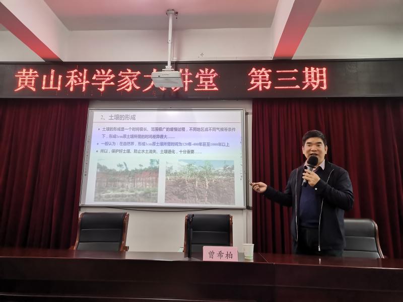 12月11日,第三期“黄山科学家大讲堂”讲座走进歙县王村中心学校,市科协主席梁昌振主持。中国农业科学院农业环境与可持续发展研究所二级研究员、博士生导师曾希柏以《健康的土壤:健康食品和更好环境的基础》为主题做科普讲座。