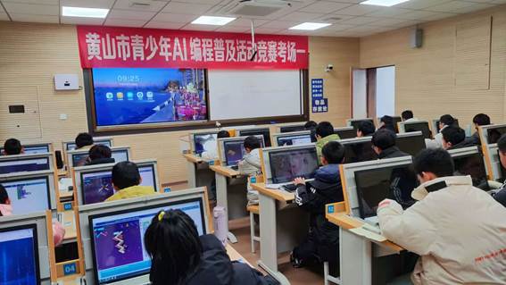 12月14日,黄山市青少年AI编程普及活动在黄山开放大学举行,共有来自三区四县的360多名中小学选手参赛。