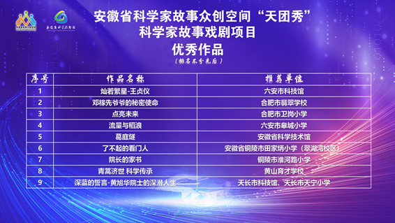 本次活动由安徽省科学技术协会、安徽省教育厅联合主办,设置科学家精神宣讲项目成人组、科学家精神宣讲项目青少组、科学家故事戏剧、科学课程(活动)四个项目,活动吸引了全省22家科技馆、72所中小学校踊跃参与,共收到301件作品。经过初选、终审两轮严格评审,仅有39件优秀作品入围展演,最终评选出37件获奖作品,竞争异常激烈。