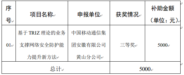 经研究,拟对2025年度安徽省创新方法大赛黄山市获奖项目予以补助,公示期为2025年12月4日至11日。如有异议,请在公示期内以书面形式实名向市科协反映。
